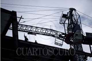 MÉXICO, D.F., 19SEPTIEMBRE2013.- Un trabajador de la construcción levanta la mano desde las alturas mientras se dedica a la edificación de la estructura de un rascacielos al sur de la Ciudad de México. FOTO: MISAEL VALTIERRA / CUARTOSCURO.CO