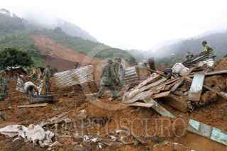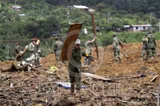 LA PINTADA, GUERRERO, 19SEPTIEMBRE2013.- Elementos del ejercito se encuentran realizando trabajos de remoción de escombros en las casas que fueron sepultadas por un alud de tierra debido al reblandecimiento de la tierra tras las intensas lluvias provocados por los meteoros Ingrid y Manuel, por la mañana el Secretario de Gobernación confirmó que debido a esta tragedia son 68 personas desaparecidas. FOTO: GUILLERMO PEREA /CUARTOSCURO.COM