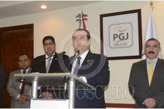 MÉXICO, D.F., 19SEPTIEMBRE2013.- El procurador Rodolfo Ríos Garza ofreció una conferencia de prensa para anunciar la detención de dos sujetos involucrados en el caso Heaven; se trata de Edgar Ernesto Gutiérrez Vera, policía segundo con cargo de patrullero que estaba adscrito al sector Ángel en la Zona rosa y Cesar Iván Romero Reyes, sujeto que cuenta con antecedentes penales por delitos contra la salud. FOTO: LUIS CARBAYO /CUARTOSCURO.COM