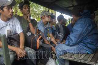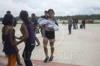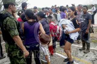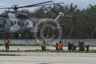 ACAPULCO, GUERRERO, 19SEPTIEMBRE2013.- Familias provenientes de la colonia “La Pintada” la cual sufrio un alud de tierra el cual versiones apuntan a que hay mas de 60 personas desaparecidas. Las familias llegaron a bordo de un helicóptero de la Fuerza Aerea Mexicana a la Base Militar ubicada en Pie de la Cuesta. FOTO: ENRIQUE ORDÓÑEZ /CUARTOSCURO.COM