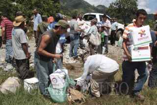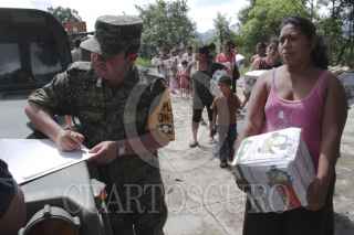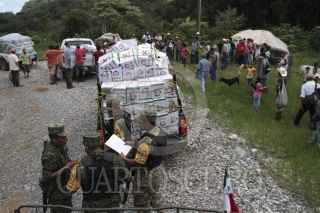 PISAFLORES, HIDALGO, 19SEPTIEMBRE2013.- Elementos del 5to Batallón de la 19 Zona Militar entregaron despensas en diversas comunidades incomunicadas por el deslave de cerros, ocasionados por el Huracán Ingrid en este Municipio. Las despensas repartidas fueron proporcionadas por el Gobierno del Estado las cuales fueron proporcionadas solo una por familia. FOTO: JUAN PABLO ZAMORA /CUARTOSCURO.COM