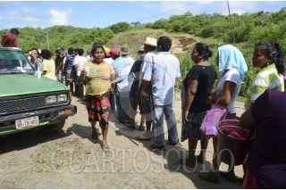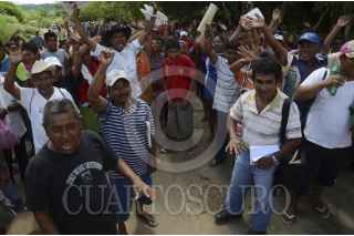 ACAPULCO, GUERRERO, 20SEPTIEMBRE2013.- Por segundo día consecutivo, desde las primeras horas de la mañana, unos 250 pobladores de los Bienes Comunales de Cacahuatepec, coordinados por la (CECOP), bloquearon la carretera rural que conecta la vialidad que cruza dicho sector -integrado por 47 anexos poblacionales-, con la comunidad de Salsipuedes, donde se encuentran 60 casas destruidas entre por el lodo por la crecida del río Papagayo, ellos denuncian que solamente les una vez les dieron de comer y atole para el desayuno. Exigieron la presencia del presidente municipal Luis Walton para que cumplieran o que prometió, gritaron. FOTO: BERNANDINO HERNÁNDEZ /CUARTOSCURO.COM