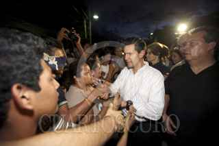 ACAPULCO, GUERRERO, 21SEPTIEMBRE2013.- Enrique Peña Nieto, Presidente de México, acompañado del gobernador de la entidad Ángel Aguirre y su esposa Angelica Rivera, recorrieron las colonias afectadas por las inundaciones provocadas por el huracán Ingrid y la tormenta Manuel, el Jefe del Ejecutivo aseguró que la ayuda será entrega casa por casa si es necesario. FOTO: PRESIDENCIA /CUARTOSCURO.COM