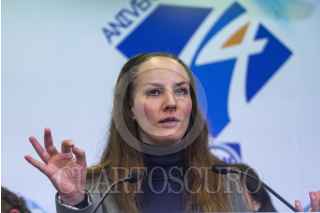 MÉXICO, D.F., 22SEPTIEMBRE2013.- Gabriela Cuevas, Senadora por el pan durante la Conferencia que realizaron en la Sede Nacional del PAN para dar a conocer su iniciativa de Ley para regular las marchas en la Ciudad de México. FOTO: ENRIQUE ORDÓÑEZ /CUARTOSCURO.COM