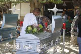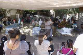 CIUDAD JUÁREZ, CHIHUAHUA, 24SEPTIEMBRE2013.- Mireya de 50 años es despedida junto con su sobrino Aarón de 17 años, también dan el ultimo adiós al primo de Aaron, Miguel de 22 años, los tres son velados en la misma casa; cabe mencionar que todas las personas vivían en el poblado de Loma Blanca y fueron asesinados cuando festejaban en su domicilio. FOTO: NACHO RUÍZ /CUARTOSCURO.COM