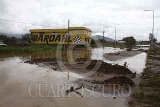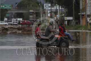 TLALIXTAC DE CABRERA, OAXACA, 24SEPTIEMBRE2013.- Debido a las intensas lluvias de los últimos días la carretera federal 190 Oaxaca-Istmo se encuentra cerrada en un tramo cercano a los 200 metros que va de Tlalixtac de Cabrera a Santa María el Tule, el carril afectado que es el que va del Tule hacia la ciudad de Oaxaca en el que se encuentra almacenada una gran cantidad de agua, lodo y pedazos de árbol, en uno de los talleres mecánicos que se ubican en el lugar usan para poder transportarse una cuatrimoto y una pequeña balsa. FOTO: ARTURO PÉREZ ALFONSO /CUARTOSCURO.COM