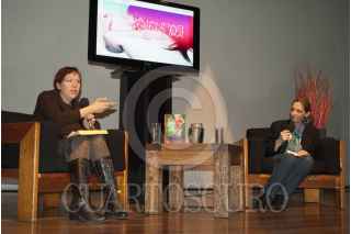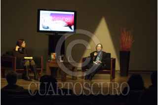 MÉXICO, D.F., 24SEPTIEMBRE2013.- La escritora Ana García Bergua, acompañada de Raquel Castro, en el ciclo "La sexualidad femenina en la literatura", habló de la píldora anticonceptiva en los años sesentas, tema que abordó en su novela “La bomba de San Andrés”. FOTO: MITZI BLANQUET /CUARTOSCURO.COM