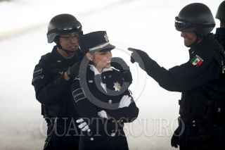 MÉXICO, D.F., 25SEPTIEMBRE2013.- Elementos federales se acomodan el uniforme previo a la ceremonia en la que se homenajeo a los cinco policías federales que murieron abordo de un helicoptero Black Hawk, donado por el gobierno estadunidense en el marco del Plan Mérida, durante los operativos que realizaba la Secretaría de Seguridad Pública Federal de ayuda a los daminificados en Guerrero por las lluvias provocadas por los meteoros Ingrid y Manuel. La ceremonia fue encabezada por el Presidente de México Enrique Peña Nieto y se llevó a cabo en el Centro de Alto Mando. FOTO: MOISÉS PABLO /CUARTOSCURO.COM