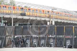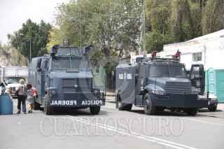 MÉXICO, D.F., 25SEPTIEMBRE2013.- Esta mañana el titular de la Secretaría de Educación Pública, Emilio Chuayffet Chemor, compareció ante las comisiones; por lo que elementos de la Policía Federal en la Cámara de Diputados resguardaron el recinto con dos tanquetas y un muro de metal para evitar que maestros de la CNTE se aproximaran. FOTO: JUAN PABLO ZAMORA / CUARTOSCURO.COM