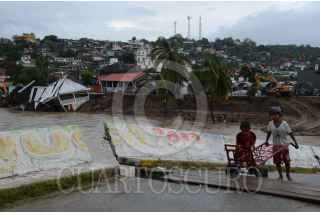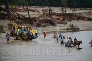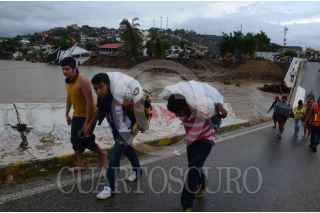 ACAPULCO, GUERRERO., 25SEPTIEMBRE2013.- Pobladores de distintas comunidades afectados por la tormenta Manuel cruzan el rio de Coyuca de Benítez con alimentos y combustible ya que continua el desabasto. FOTO: BERNANDINO HERNÁNDEZ /CUARTOSCURO.COM