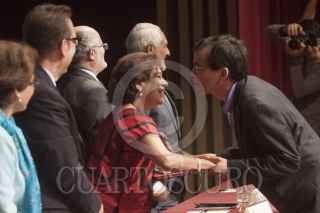 MÉXICO, D.F., 26SEPTIEMBRE2013.- María Teresa Franco, directora del Instituto Nacional de Antropología e Historia entregó una mención honorífica en el premio de Antonio García Cubas en la categoría Libro de Arte o Edición Facsimilar a la obra Pedro Valtierra. Mirada y Testimonio editada por UNAM, Centro Cultural Universitario Tlatelolco, Fondo de Cultura Económica, Fundación Pedro Valtierra, A.C. y Cuartoscuro Agencia de Fotografía y Editora, en el marco de la inauguración de la XXV Feria del Libro de Antropología e Historia, que se lleva en el Museo Nacional de Antropología e Historia. FOTO: CUARTOSCURO.COM