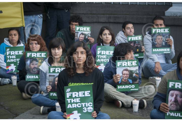 MÉXICO, D.F., 27SEPTIEMBRE2013.- Activistas de Greenpeace organizaron una manifestación afuera de las instalaciones de la Embajada Rusa en México para exigir a las autoridades la liberación de los 30 activistas que permanecen detenidos luego de que realizaron una protesta pacífica en aguas del Ártico ruso el pasado 18 de septiembre. FOTO: DIEGO SIMÓN SÁNCHEZ /CUARTOSCURO.COM