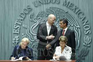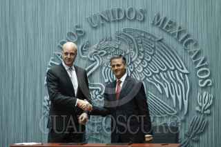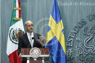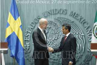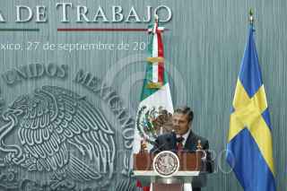 MÉXICO, D.F., 27SEPTIEMBRE2013.- El presidente Enrique Peña Nieto, acompañado de Fredrik Reinfeldt, primer ministro del Reino de Suecia durante un mensaje a medios de comunicación que se celebró en el patio de honor de Palacio Nacional. FOTO: RODOLFO ANGULO /CUARTOSCURO.COM