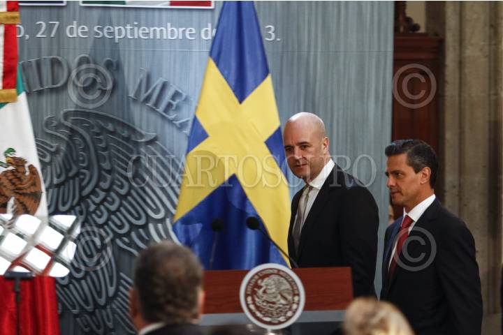 MÉXICO, D.F., 27SEPTIEMBRE2013.- El presidente Enrique Peña Nieto, acompañado de Fredrik Reinfeldt, primer ministro del Reino de Suecia durante la comida en honor al primer ministro que se celebró en el Salón Tesorería de Palacio Nacional. FOTO: RODOLFO ANGULO /CUARTOSCURO.COM