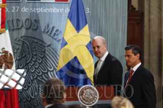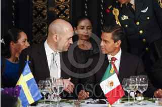 MÉXICO, D.F., 27SEPTIEMBRE2013.- El presidente Enrique Peña Nieto, acompañado de Fredrik Reinfeldt, primer ministro del Reino de Suecia durante la comida en honor al primer ministro que se celebró en el Salón Tesorería de Palacio Nacional. FOTO: RODOLFO ANGULO /CUARTOSCURO.COM