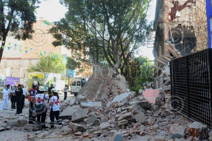 MÉXICO D.F. 28SEPTIEMBRE2013.- Una familia formada por 4 personas, entre estos un bebe de 4 meses, salvan milagrosamente la vida al derrumbar la casona vieja de 3 pisos en la que vivían ubicada en la calle Liverpool numero 62 de la colonia Juárez. Al lugar, arribó personal de rescate y bomberos en busca de personas atrapadas. Encontrando únicamente escombros y atendiendo a los sobrevivientes únicamente por crisis nerviosa. FOTO: LUIS CARBAYO /CUARTOSCURO.COM