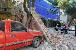 MÉXICO D.F. 28SEPTIEMBRE2013.- Una familia formada por 4 personas, entre estos un bebe de 4 meses, salvan milagrosamente la vida al derrumbar la casona vieja de 3 pisos en la que vivían ubicada en la calle Liverpool numero 62 de la colonia Juárez. Al lugar, arribó personal de rescate y bomberos en busca de personas atrapadas. Encontrando únicamente escombros y atendiendo a los sobrevivientes únicamente por crisis nerviosa. FOTO: LUIS CARBAYO /CUARTOSCURO.COM