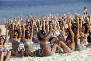 CANCÚN, QUINTANA ROO, 28SEPTIEMBRE2013.- Se realizó el Bikini Bash organizado por la revista Cosmopolitan, evento que se lleva a caco por primera vez en México. Mil chicas en bikini serán parte de esta gran celebración quienes posaron para una foto aérea. Los invitados de honor fueron la cantante Belinda y Moderatto. FOTO: ELIZABETH RUIZ /CUARTOSCURO.COM