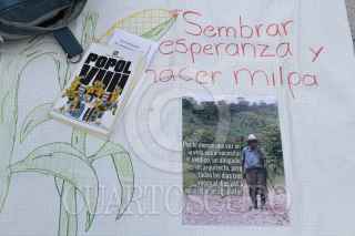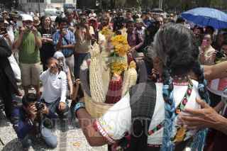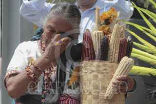 MÉXICO, D.F., 29SEPTIEMBRE2013.- Diversas organizaciones realizaron un mitín festival para celebrar el "Día Nacional del Maíz" protestando en contra de los transgénicos, así como la industrialización de este grano, considerado como planta representativa de nuestro País. Por ser día de San Miguel, según en diversas poblaciones, se dá gracias por la fertilidad de la Tierra. FOTO: JUAN PABLO ZAMORA /CUARTOSCURO.COM
