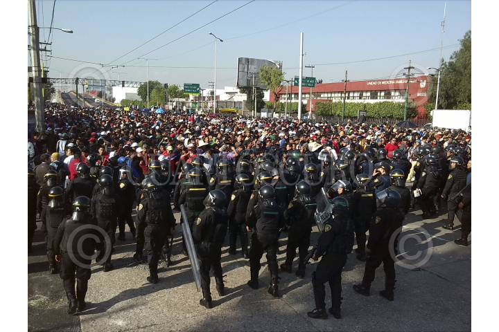 MÉXICO, D.F., 01OCTUBRE2013.- Maestros de la CNTE bloquearon las inmediaciones del Aeropuerto Internacional de la Ciudad de México (AICM). El bloqueo abarcó desde Boulevard Puerto Aéreo, Oceanía, Circuito Interior, Eje 4 y Calle 7. Autoridades informan que han logrado replegar al cuerpo de docentes, quienes han hecho un alto total a la altura de Ignacio Zaragoza, se prevé que reanuden la marcha hacia la Secretaría de Gobernación. Los carriles de Circuito Interior han quedado liberados, se registra saldo blanco. FOTO: DIEGO SIMÓN SÁNCHEZ / CUARTOSCURO.COM