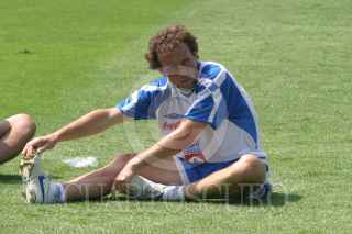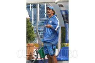 MEXICO, D.F. 19OCTUBRE2005.- Gabriel Pereyra y Oscar el "Conejo" Pérez durante la conferencia de prensa que ofrecoeron al termino del entrenamiento en el estadio Azul. FOTO: Nelly Salas/CUARTOSCURO.COM