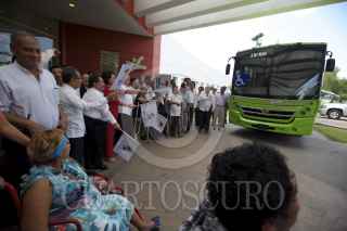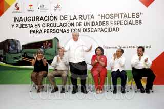 VILLAHERMOSA, TABASCO, 02OCTUBRE2013.- Arturo Núñez Jiménez, gobernador local puso en marcha la inauguración de la ruta Hospitales y puesta en circulación de unidades especiales para personas con discapacidad, que tubo lugar en el Centro de Rehabilitación y Educación Especial (CREE). Ahí en este acto, la señora Veronica Sánchez y dos mujeres mas irrumpieron cuneando el mandatario hablaba para denunciar que dicho centro de rehabilitación es una cochinada y mas bien parece un cochinero debido al abandono de las áreas. FOTO: MARCO POLO GUZMÁN HERNÁNDEZ/CUARTOSCURO.COM