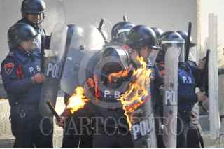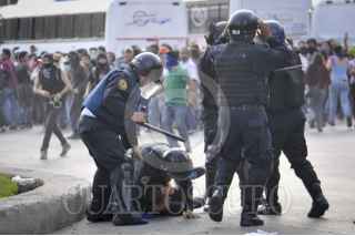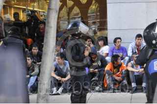 MÉXICO, D.F., 02OCTUBRE2013.- Varios jóvenes fueron detenidos durante la marcha del aniversario de la Matanza del 2 de Octubre. Jóvenes autodenominados Anarquistas, se enfrentaron con elementos del cuerpo de granaderos de la policía metropolitana desde la avenida Hidalgo hasta casi Insurgentes y Reforma durante la marcha del aniversario de la Matanza del 2 de Octubre. Durante la gresca fueron detenidos más de 30 jóvenes quienes fueron encapsulados por policías y gente infiltrada de civil. FOTO: DIEGO SIMÓN SÁNCHEZ /CUARTOSCURO.COM