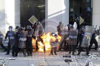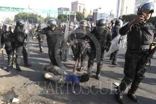 MÉXICO, D.F., 02OCTUBRE2013.- Jóvenes fueron detenidos en la marcha conmemorativa a la matanza de jóvenes suscitada el 2 de octubre del 1968 cuando el batallón Olimpia asesinó a quienes participaron en aquel año en un mítin en la Plaza de las Tres Culturas en Tlatelolco. FOTO: IVÁN STEPHENS /CUARTOSCURO.COM