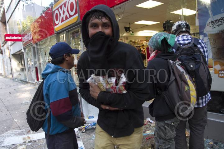 MÉXICO, D.F., 02OCTUBRE2013.- Jóvenes fueron detenidos en la marcha conmemorativa a la matanza de jóvenes suscitada el 2 de octubre del 1968 cuando el batallón Olimpia asesinó a quienes participaron en aquel año en un mítin en la Plaza de las Tres Culturas en Tlatelolco. FOTO: IVÁN STEPHENS /CUARTOSCURO.COM