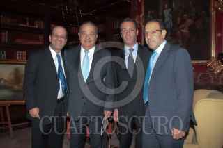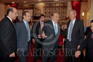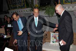 MÉXICO, D.F. 02OCTUBRE2013.- El empresario Carlos Slim posa con sus hijos Carlos, presidente del Consejo de Administración de Grupo Carso y vicepresidente del Consejo de América Móvil; Marco Antonio, Presidente de Grupo Financiero Inbursa; y Patricio Slim Domit, vicepresidente de Grupo Carso y América Móvil, presidente del Consejo de Administración de Ferrosur, director general en Industrias Nacobre, miembro de los consejos de Carso Global Telecom, Teléfonos de México, Hoteles Calinda, Grupo Condumex, Empresas Frisco, Sears Roebuck de México, Cigarros La Tabacalera Mexicana y Promotora Inbursa. La foto fué tomada después del informe de logros de la Alianza de la WWF (World Wildlife Fund),Semarnat y la Fundación Slim. FOTO: JUAN PABLO ZAMORA /CUARTOSCURO.COM