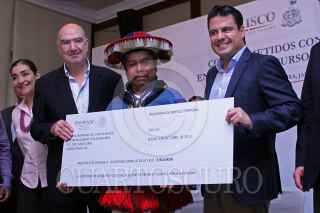 GUADALAJARA, JALISCO, 03OCTUBRE2013.- Hoy en Casa Jalisco el Secretario de Medio Ambiente y Recursos Naturales (SEMARNAT), Juan José Guerra Abud y el Gobernador del Estado, Jorge Aristóteles Sandoval Díaz, realizaron la entrega de 5 millones de pesos en recursos para el sector ambiental de Jalisco que otorga el Gobierno federal. FOTO: FERNANDO CARRANZA /CUARTOSCURO.COM