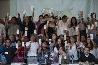 MÉXICO, D.F., 03SEPTIEMBRE2013.- Integrantes de Artículo 19 y de la asociación Prodh, revelaron ante medios de comunicación que presentaron una queja ante CDHDF por las agresiones cometidas en contra de miembros del Centro de Derechos Humanos Miguel Agustín Pro Juárez A.C. (Centro Prodh). La demanda fue motivada por lo sucedido ayer en la marcha conmemorativa de la matanza del 02 de octubre de 1968, en relación a los actos vandálicos y las detenciones a periodistas por parte de las autoridades. Dario Ramírez mencionó que “son 25 los casos de periodistas, documentados e identificados en su labor, que fueron detenidos en medio de los actos violentos de ayer”. FOTO: MARÍA JOSÉ MARTÍNEZ / CUARTOSCURO.COM