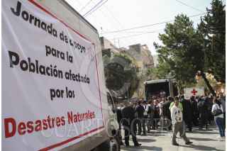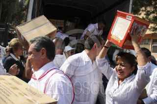 MÉXICO, D.F., 04SEPTIEMBRE2013.- Fernando Suinaga Cárdenas, presidente nacional de la Cruz Roja Mexicana, recibió los víveres que el Sindicato Nacional de Trabajadores de la Educación (SNTE) recolectaron para los damnificados por las pasadas inundaciones en el país. FOTO: ADOLFO VLADIMIR /CUARTOSCURO.COM