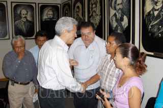 CHILPANCINGO, GUERRERO 20OCTUBRE2005.- Carlos Alvarez Reyes secretario de finanzas se despide del diputado Alvis Gallardo Carmona, observan los diputados Gustavo Miranda Gonzalez, Fredy Garcia Guevara y Felix Bautista Matias, luego de que sostuvieran una reunion en el interior del Congreso local, de manera privada. FOTO: Oscar Alvarado/CUAROSCURO.COM