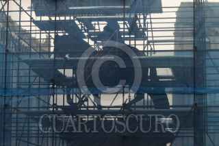MÉXICO, D.F., 07OCTUBRE2013.- La escultura de Carlos IV mejor conocida como “El Caballito” permanece resguardada por una malla y vallas mientras concluye el período de restauración y reparo del daño que presuntamente se le hizo. FOTO: ENRIQUE ORDÓÑEZ /CUARTOSCURO.COM