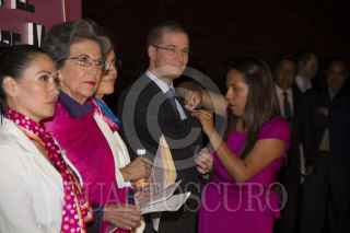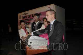MÉXICO, D.F., 08OCTUBRE013.- Ricardo Anaya, presidente de la Mesa directiva de la Cámara de diputados, y Silvano Aureoles Conejo, presidente de la Junta de Coordinación Política en esa cámara, encendieron la iluminación de la fachada de ese recinto con el que los legisladores se unen a la "Conmemoración del mes de la Lucha contra el cáncer de mama" FOTO: JUAN PABLO ZAMORA /CUARTOSCURO.COM