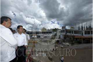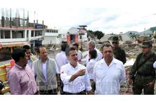 CHILPANCINGO, GUERRERO, 09OCTUBRE2013.- Luego de visitar el punto de encauzamiento del río Huacapa, el Presidente Enrique Peña Nieto encabezó la Reunión de Evaluación del Consejo Estatal de Protección Civil, en donde estableció que lo que se quiere es trabajar de manera consistente y permanente con la autoridad estatal para reactivar la actividad económica, para apoyar procesos de activación de modelos productivos que permitan a las comunidades, sobre todo a las más apartadas, una mejor condición social. A la gira de trabajo asistieron Ángel Aguirre, gobernador de la entidad, David Korenfeld, director de Conagua y Gerardo Ruíz Esparza, secretario de Comunicaciones y Transportes. FOTO: PRESIDENCIA /CUARTOSCURO.COM