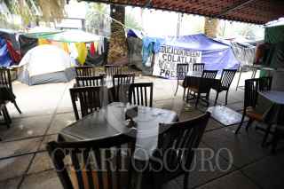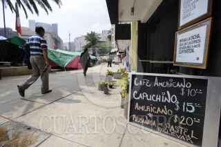 MÉXICO, D.F., 10OCTUBRE2013.- Resturanteros de la zona del Monumento a la Revolución hacen un llamamiento a las autoridades porque denuncian que su actividad económica esta seriamente comprometida por el campamentos que mantienen los maestros desde hace semanas en el lugar. FOTO: MOISÉS PABLO /CUARTOSCURO.COM