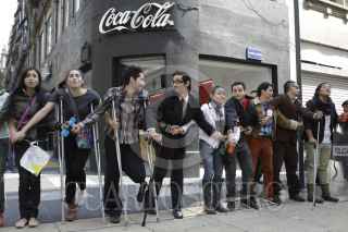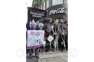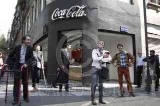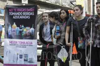 MÉXICO, D.F., 10OCTUBRE2013.- La Alianza por la Salud Alimentaria encabezada por Alejandro Calvillo lanzaron una segunda campaña de concientización sobre el riesgo a la salud que representa el alto consumo de bebidas azucaradas, promoviendo el consumo de agua, agua con gas, leche sin grasa y té sin azúcar, como las mejores opciones de hidratación. Al finalizar la conferencia de prensa se trasladaron a la esquina de Palma y Madero donde se encuentra un expendió de refresco y ahí realizaron un representación teatral en donde satirizaron las campañas publicitarias de las trasnacionales refresqueras, haciendo énfasis en los problemas de salud que conlleva el consumir este tipo de bebidas, tales como la diabetes, obesidad y problemas cardiovasculares. FOTO: MOISÉS PABLO /CUARTOSCURO.COM