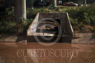 CULIACÁN,S INALOA, 10OCTUBRE2013.- Un pescador lanza la atarraya a la orilla del Canal Recursos. Debido al desempleo personas buscan otro tipo de ingresos como en este caso, sin embargo las aguas de dichos canales no son confiables. FOTO: RASHIDE FRÍAS /CUARTOSCURO.COM