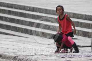 OAXACA, OAXACA, 11OCTUBRE2013.- Un par de niñas juegan en las calles de Oaxaca. FOTO: ARTURO PÉREZ ALFONSO/CUARTOSCURO.COM