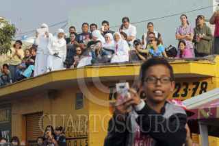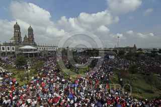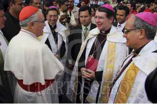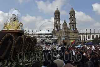 GUADALAJARA, JALISCO, 12OCTUBRE2013.- Hoy como cada año se llevo a cabo la Romería, a la cual acudieron aproximadamente 2 millones y medio de asistentes que acompañaron a La Generala hasta su santuario, la Basílica de Zapopan, el recorrido desde la Catedral metropolitana de Guadalajara hasta la Basílica, fue encabezado por el Arzobispo Emérito, Juan Sandoval Iñiguez y el Cardenal José Francisco Robles Ortega y en donde el nuncio Christophe Pierre, fue el encargado de oficiar la misa de bienvenida a la Virgen de Zapopan. FOTO: FERNANDO CARRANZA GARCIA /CUARTOSCURO.COM