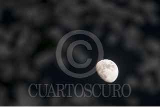 MÉXICO, D.F., 15OCTUBRE2013.- La luna de anoche en su fase creciente se asoma entre las ramas de un árbol. Este viernes 18 de octubre tendrá lugar un eclipse de Luna Penumbral que será visible en varias partes del mundo. FOTO: DIEGO SIMÓN SÁNCHEZ /CUARTOSCURO.COM