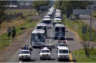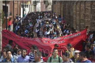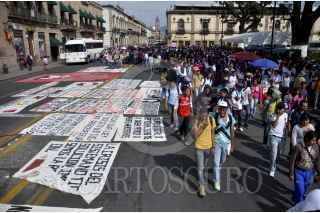 MORELIA, MICHOACÁN, 15OCTUBRE2013.- Más de 2 mil alumnos de las diferentes escuelas normales del estado marcharon en la capital del estado por las principales avenidas. Los estudiantes se trasladaron en más de 37 autobuses que fueron retenidos en días pasados por la normal de Tiripetío y Cherán. FOTO: ALÁN ORTEGA /CUARTOSCURO.COM