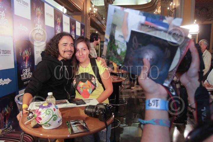 MÉXICO, D.F. 15OCTUBRE2013.- El grupo Café Tacuba, integrado por Rubén Isaac Albarrán Ortega (voz principal y guitarra rítmica), Emmanuel del Real Díaz (teclados, caja de ritmos, melódica, guitarra rítmica, segunda voz y coros), José Alfredo Rangel Arroyo (guitarra solista y coros) y Enrique Rangel Arroyo (bajo, contrabajo, ukelele y coros) se presentaron en el Teatro Metropólitan para firmar autógrafos, cabe señalar que desde el 2007 la banda no hacía acto de presencia en este tipo de acontecimientos. FOTO: JUAN PABLO ZAMORA /CUARTOSCURO.COM