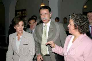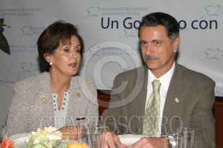 MEXICO, DF 21OCTUBRE2005.- Maria Elena Alvarez secretaria ejecutiva del inmujeres y el secretario de Gobernación Carlos Abascal durante el festejo de los 52ª aniversarios del sufragio femenimo en México. FOTO: Leonardo Casas/CUARTOSCURO.COM