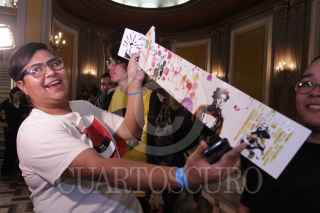 MÉXICO, D.F. 15OCTUBRE2013.- El grupo Café Tacuba, integrado por Rubén Isaac Albarrán Ortega (voz principal y guitarra rítmica), Emmanuel del Real Díaz (teclados, caja de ritmos, melódica, guitarra rítmica, segunda voz y coros), José Alfredo Rangel Arroyo (guitarra solista y coros) y Enrique Rangel Arroyo (bajo, contrabajo, ukelele y coros) se presentaron en el Teatro Metropólitan para firmar autógrafos, cabe señalar que desde el 2007 la banda no hacía acto de presencia en este tipo de acontecimientos. FOTO: JUAN PABLO ZAMORA /CUARTOSCURO.COM