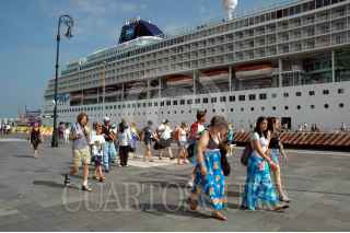 VERACRUZ,VERACRUZ.-21OCTUBRE2005.- Turistas que viajan abordo del crucero "Norwegian Sun" procedente de Galveston Texas con destino al Caribe Mexicano, deberán permanecer en el puerto de Veracruz por espacio de 24 horas debido a la presencia del huracan"Wilma". FOTO: Isaac Aguilar/CUARTOSCURO.COM