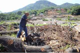 ACAPULCO, GUERRERO,, 16OCTUBRE2013.- Poblado El Cayaco de este municipio denunciaron la devastación de árboles y de casas por parte de la constructora ICA que realiza trabajos del acceso al Macrotúnel, sin que se haya indemnizado a los propietarios, por lo que advirtieron que hoy se opondrán a que las pesadas máquinas continúen sus destructora labor, hasta en tanto se les pague a cada uno sus afectaciones. El ex comisario ejidal, Alberto Ávila González, lamentó que a la fecha el gobierno de Ángel Aguirre Rivero no le haya dado respuesta al escrito formal de fecha diez de junio del año en curso, en el que solicitó, en base a la Ley de Transparencia y Acceso a la Información Pública del Estado de Guerrero, se les informe “fehacientemente los pagos hechos a la comisaría ejidal del citado núcleo agrario antes citado, por concepto de indemnización debido a la obra del Macrotúnel y que segmenta las tierras de nuestro ejido”. Asimismo hizo un llamado al gobernador Aguirre para que tome cartas en el asunto y se transparente el manejo de los recursos y el padrón de ejidatarios beneficiados, ya que advirtió que no van a permitir que los trabajos continúen hasta en tanto no tengan respuestas favorables. FOTO: BERNANDINO HERNÁNDEZ /CUARTOSCURO.COM
