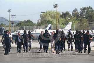 MÉXICO D.F.-21OCTUBRE2005.- Desde los hangares de la PGR, Procuradurìa General de la Repùblica, fue extraditado Antonio Garcìa Riojas por peticiòn del gobierno de EEUU, acusado de tràfico de drogas. Elementos de la Agencia Federal de Investigaciòn AFI, lo llevan al jet en el que fue transportado. FOTO: Oscar Lòpez/CUARTOSCURO.COM